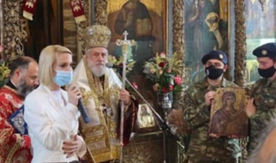 Η βουλευτής Κυκλάδων της Νέας Δημοκρατίας, Κατερίνα Μονογυιού, επισκέφτηκε την Άνδρο για τον εορτασμό της Παναγίας Θεοσκέπαστης, πολιούχου του νησιού. Η βουλευτής παρευρέθηκε το πρωί στη Θεία Λειτουργία και το απόγευμα στον Εσπερινό. Στη Θεία Λειτουργία ιερούργησε ο Σεβασμιώτατος Μητροπολίτης Σύρου κ. Δωρόθεος Β’.