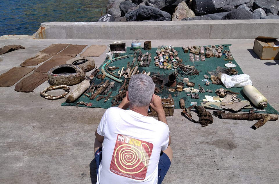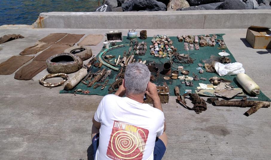 Αυτή τη φορά, μετά από κατάδυση πέντε δυτών-μελών της ομάδας για 45 λεπτά, ανασύρθηκαν 130 κιλά απορριμμάτων, κυρίως πλαστικά μπουκάλια και κουτάκια αλουμινίου. Περίπου το ένα τέταρτο των ευρημάτων ήταν επαγγελματικά και αλιευτικά υλικά, πλαστικοί και λαστιχένιοι σωλήνες, ντίζες σκαφών και καλώδια. Όπως πάντα, μετά τον καθαρισμό, έγινε καταμέτρηση, καταγραφή και διαχωρισμός των σκουπιδιών.