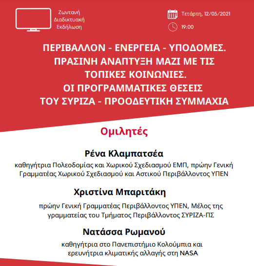 Στο πλαίσιο της πανελλαδικής παρουσίασης και συζήτησης των προγραμματικών θέσεων του ΣΥΡΙΖΑ-ΠΣ, η Νομαρχιακή Επιτροπή Κυκλάδων συνεχίζει τη διαβούλευση με την κοινωνία και τους φορείς της και διοργανώνει την Τετάρτη 12 Μαΐου στις 19:00 διαδικτυακή εκδήλωση – συζήτηση με θέμα: