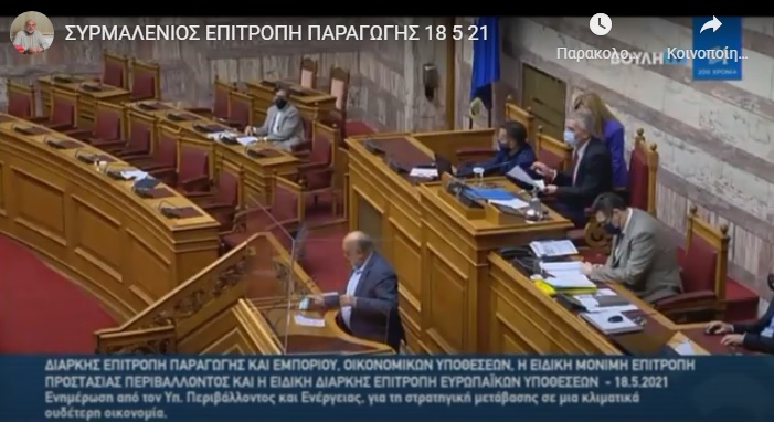 Ομιλία στη Βουλή στην κοινή συνεδρίαση της Διαρκούς Επιτροπής Παραγωγής και Εμπορίου, Διαρκούς Επιτροπής Οικονομικών Υποθέσεων, Ειδικής Μόνιμης Επιτροπής Προστασίας Περιβάλλοντος και Ειδικής Διαρκούς Επιτροπής Ευρωπαϊκών Υποθέσεων, με θέμα την στρατηγική μετάβασης σε μια κλιματικά ουδέτερη οικονομία.