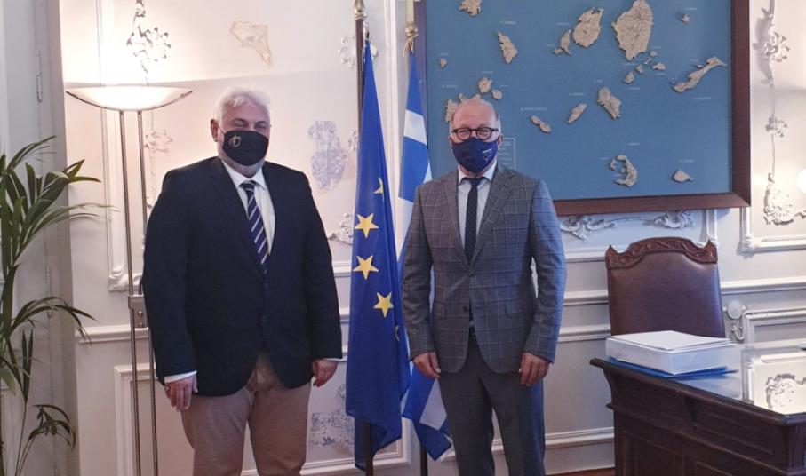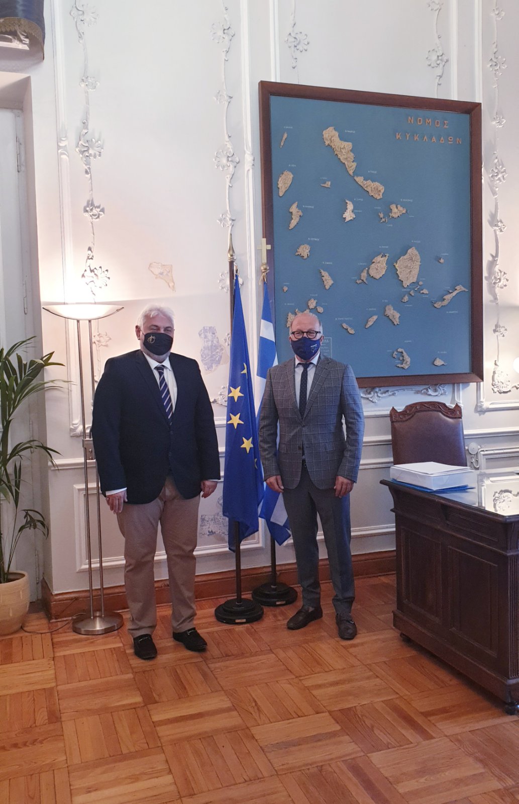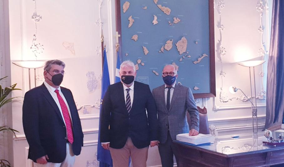 Τον Γενικό Γραμματέα Δικαιοσύνης και Ανθρωπίνων Δικαιωμάτων, κ. Πάνο Αλεξανδρή, συνοδευόμενο από τον Πρόεδρο του Δικηγορικού Συλλόγου Σύρου, κ. Κωνσταντίνο Φιφλή υποδέχθηκε σήμερα, Παρασκευή 4 Ιουνίου 2021, στο γραφείο του, ο Χωρικός Αντιπεριφερειάρχης Κυκλάδων, κ. Γιώργος Λεονταρίτης.