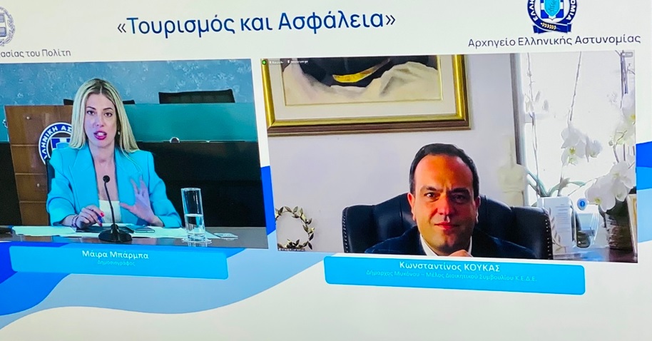 Ο Δήμαρχος Μυκόνου και μέλος του ΔΣ της Κεντρικής Ένωσης Δήμων Ελλάδας και Αντιπρόεδρος στο Κογκρέσο Τοπικών και Περιφερειακών αρχών της Ευρώπης, Κωνσταντίνος Κουκάς, εκπροσώπησε την ΚΕΔΕ στην διαδικτυακή ημερίδα που οργάνωσε σήμερα, το Υπουργείο Προστασίας του Πολίτη και το Αρχηγείο της Ελληνικής Αστυνομίας με θέμα «Τουρισμός και Ασφάλεια».