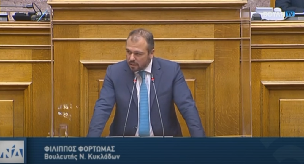 Για την προάσπιση των δικαιωμάτων των εργαζομένων, αλλά και την προστασία της εργασίας, εν γένει, μίλησε στην Ολομέλεια της Βουλής ο Βουλευτής Κυκλάδων της Νέας Δημοκρατίας, κ. Φίλιππος Φόρτωμας, κατά τη συζήτηση του νέου νομοσχεδίου του Υπουργείου Εργασίας.