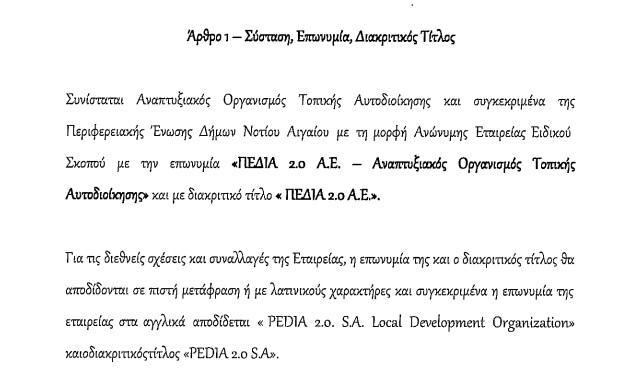 Υψηλότερη ευελιξία στη λήψη περισσότερων χρηματοδοτήσεων και στην υλοποίηση έργων προς όφελος της πρωτεύουσας των Κυκλάδων, προσδοκά ο Δήμος Σύρου – Ερμούπολης μέσα από τη συμμετοχή του στον Αναπτυξιακό Οργανισμό της ΠΕΔ Ν. Αιγαίου με την επωνυμία “ΠΕΔΙΑ 2.0 Α.Ε.”.