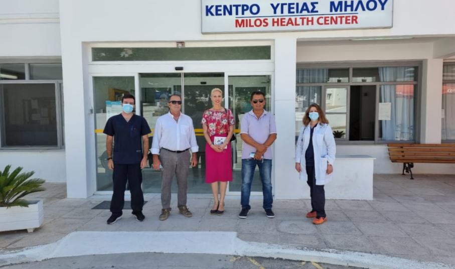 Υγείας Μήλου την υποδέχτηκε ο πρόεδρος κ. Κωνσταντίνος Μακρής, ο οποίος την ξενάγησε σε όλους τους χώρους. Η κ. Μονογυιού διαπίστωσε την άριστη κατάσταση των υποδομών του Κ.Υ. , συναντήθηκε με το ιατρικό και νοσηλευτικό προσωπικό της εφημερίας και ενημερώθηκε για τα προβλήματα που αντιμετωπίζουν στον καθημερινό τους αγώνα για την ιατρική περίθαλψη των κατοίκων και των επισκεπτών. Ο κ. Μακρής ευχαρίστησε την κ. Μονογυιού για τη συμβολή της στην άμεση πρόσληψη του νέου ιατρού στο Κ.Υ. Η κ. Μονογιού συνεχάρη τον πρόεδρο και το προσωπικό του Κέντρου Υγείας για το δύσκολο έργο που επιτελούν και για την επιτυχία του εμβολιασμού των περισσότερων κατοίκων του νησιού. Δήλωσε δε, ότι θα συνεχίσει να είναι αρωγός στον αγώνα τους για την προστασία της υγείας των νησιωτών.