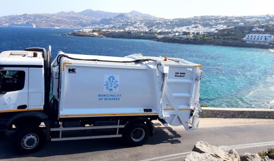 Ο Δήμος Μυκόνου, στο πλαίσιο του εκσυγχρονισμού και της βελτιστοποίησης της λειτουργίας των υπηρεσιών καθαριότητας του νησιού, προμηθεύτηκε κατόπιν διαγωνισμού ένα απορριμματοφόρο όχημα τύπου πρέσας χωρητικότητας 16m3.