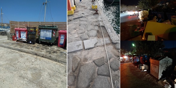 • Ο 40μέτρος μόλος παρατημένος με σπασμένα pilars και πυροσβεστικές φωλιές, με λιωμένα καπάκια φρεατίων, σπασμένα μάρμαρα και πλάκες να λείπουν, σωστές παγίδες για όσους κινούνται στη περιοχή,