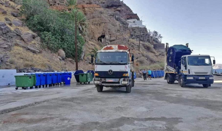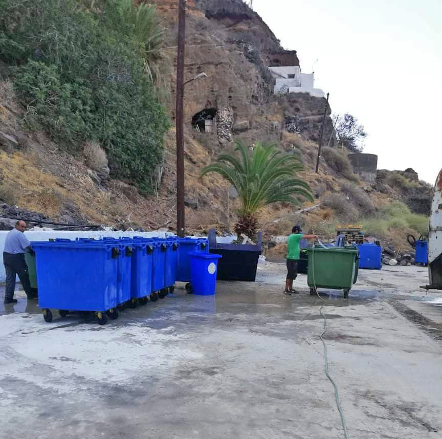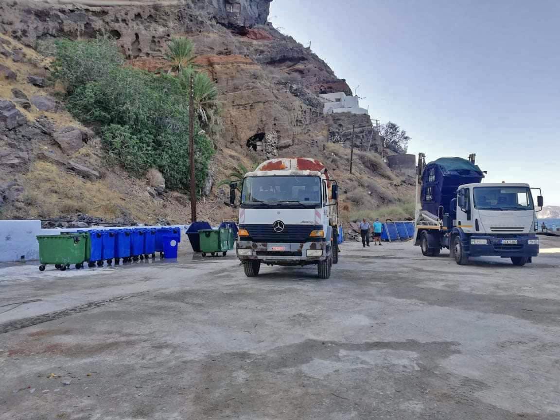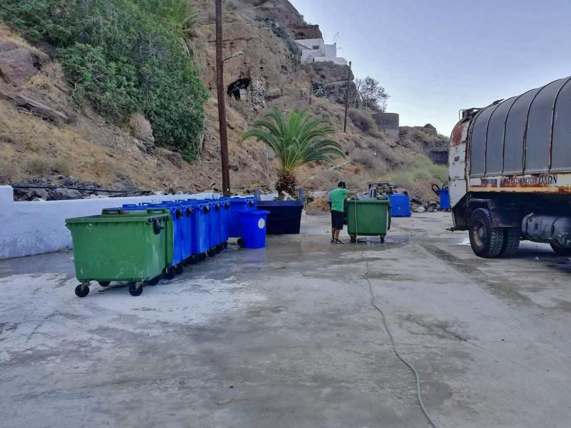 Ολοκληρώθηκαν οι εργασίες αποκατάστασης των σημείων αποκομιδής σκουπιδιών στους Όρμους των Φηρών, της Αρμένης και του Κόρφου στη Θηρασιά. Οι εργασίες επικεντρώθηκαν στην πλήρη αποκατάσταση των σημείων και του περιβάλλοντα χώρου τους, πραγματοποιήθηκε δε πλύσιμο και απολύμανση των κάδων απορριμμάτων.