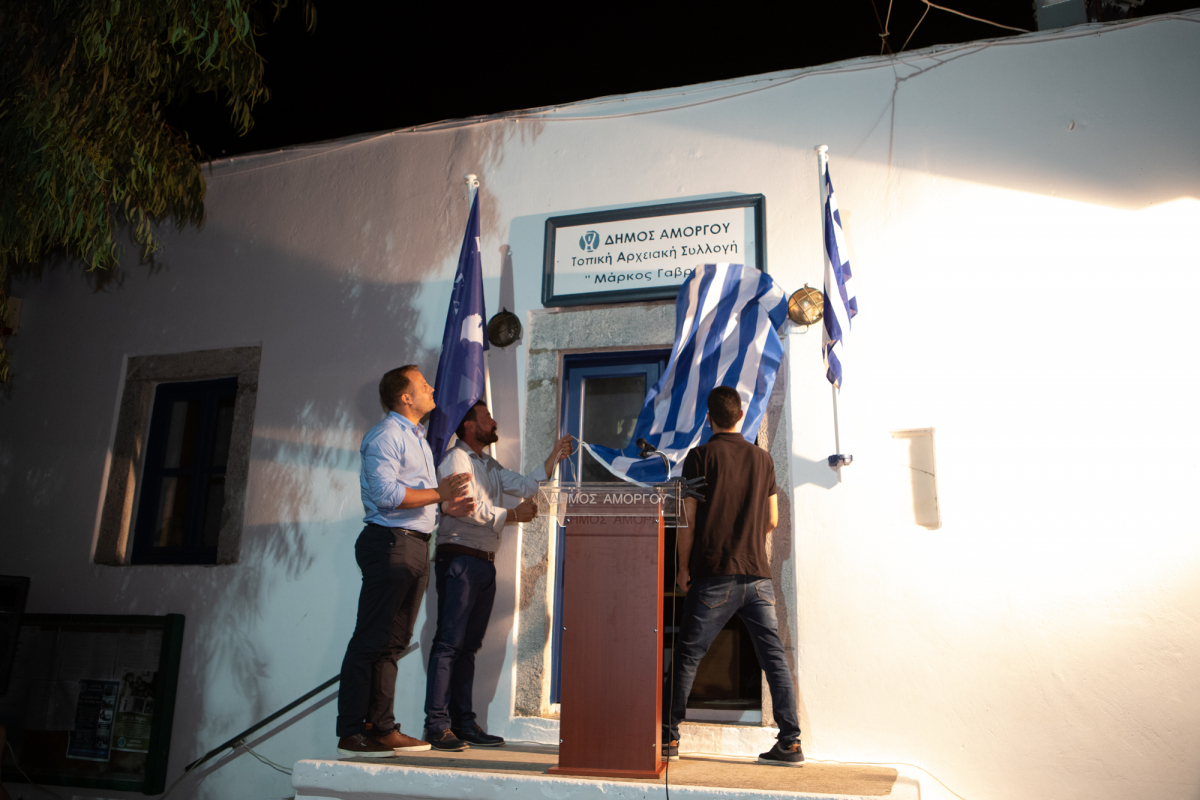 Η εκδήλωση που συντόνισε η φιλόλογος-γλωσσολόγος Νεκταρία Πρασίνου ολοκληρώθηκε με την ονοματοδοσία της Αίθουσας που στεγάζει την Τοπική Αρχειακή Συλλογή του Δήμου Αμοργού. Ο πρόεδρος του Δημοτικού Συμβουλίου του Δήμου Αμοργού κ. Σταμάτης Γρίσπος διάβασε την Απόφαση του Συμβουλίου και οι γιού του Μάρκου Γαβρά, ο Γιακουμής και ο Γιώργος Γαβράς αποκάλυψαν την επιγραφή «Δήμος Αμοργού, Τοπική Αρχειακή Συλλογή, Μάρκος Γαβράς». Ο Γιακουμής και ο Γιώργος Γαβράς, έκλεισαν μια συγκινητική βραδιά μνήμης και ιστορίας, παίζοντας την Γιαλίτικη μαντινάδα ως φόρο τιμής στον πατέρα τους.