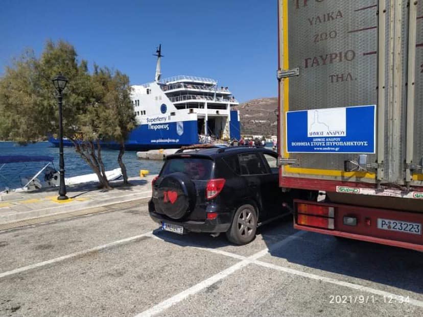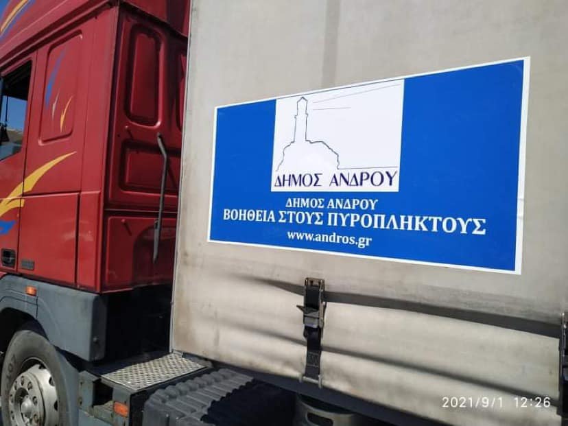 Ζωοτροφές, τρόφιμα και είδη πρώτης ανάγκης, που προσέφεραν ανιδιοτελώς κάτοικοι, επιχειρηματίες, σύλλογοι και φορείς της Άνδρου μετά πρωτοβουλία-κάλεσμα του Δήμου Άνδρου για τους πυρόπληκτους Ευβοίας, παραδόθηκαν στην βόρεια Εύβοια παρουσία του Δημάρχου Μαντουδίου- Λίμνης-Αγίας Άννας, Γεώργιου Τσαπουρνώτη. Ο Δήμαρχος Άνδρου, Δημήτρης Λοτσάρης, συνόδευσε την ανθρωπιστική αποστολή μέχρι το τελικό σημείο προορισμού της.