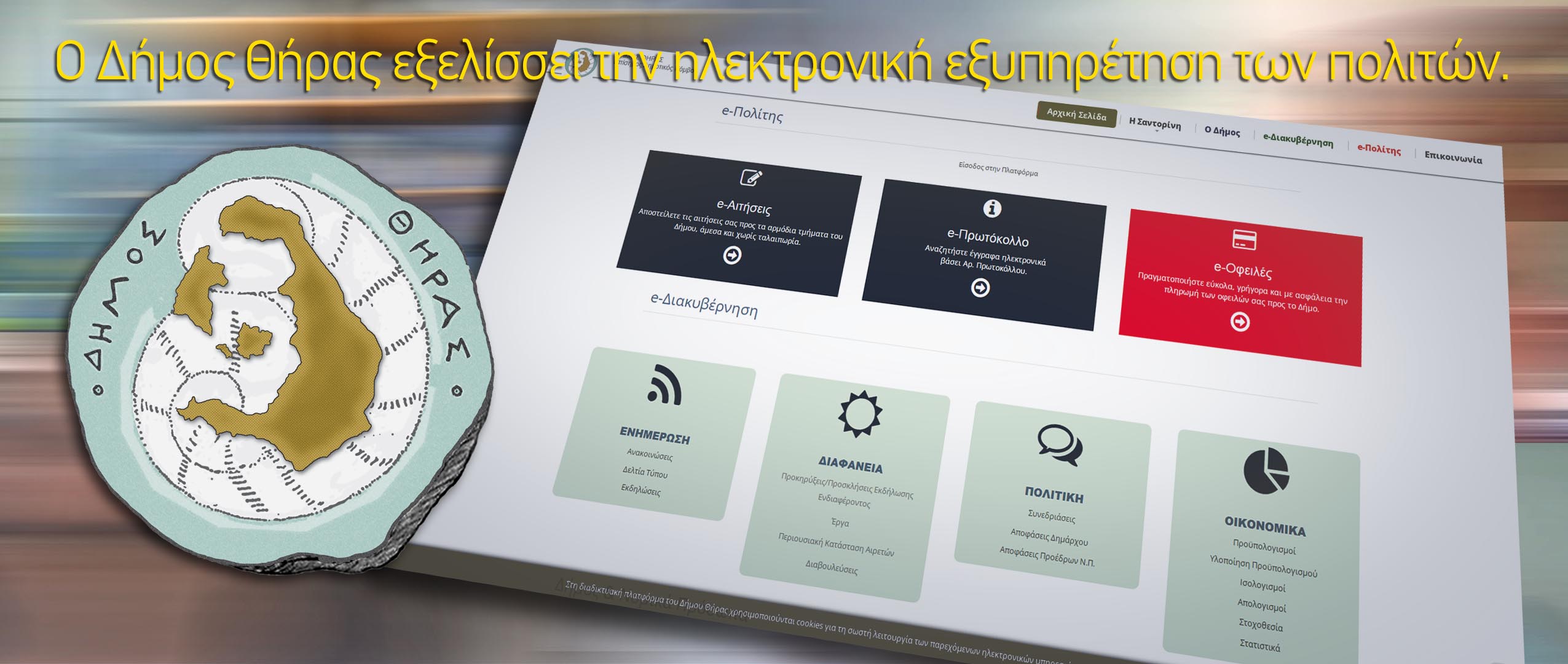 Για την καλύτερη και αμεσότερη εξυπηρέτηση, δημοτών και επιχειρηματιών, ο Δήμος Θήρας συνεχίζει την εξέλιξη της πλατφόρμας ψηφιακών υπηρεσιών στο διαδίκτυο, με αναβάθμιση των εξ αποστάσεως υπηρεσιών.