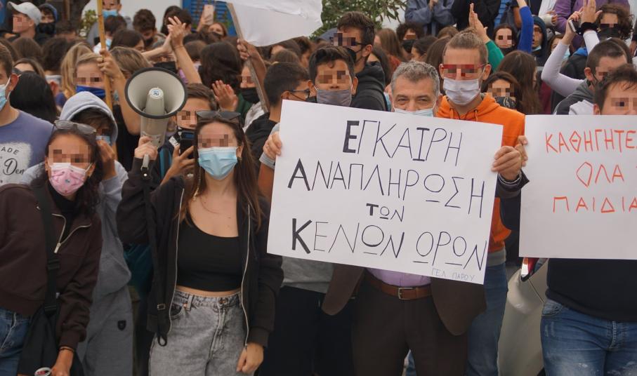 Πορεία διαμαρτυρίας, με κατάληξη στο Δημαρχείο της Πάρου, όπου συναντήθηκαν με τον Δήμαρχο, κ. Μάρκο Κωβαίο, πραγματοποίησαν οι μαθητές των τριτοβάθμιων σχολικών μονάδων του νησιού, ενάντια στην απόφαση για την σύμπτυξη τμημάτων στο ΕΠΑΛ και το Γυμνάσιο Πάρου.