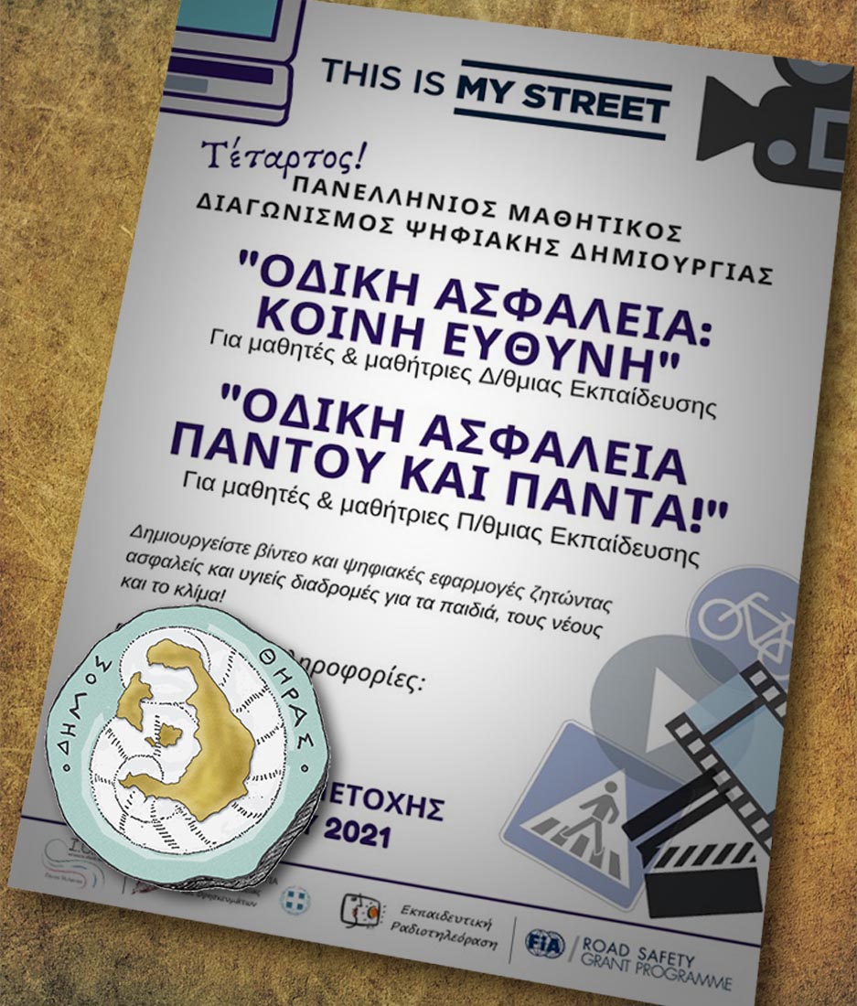 Συγκεκριμένα η Εκπαιδευτική Ραδιοτηλεόραση του Υπουργείου Παιδείας, Έρευνας και Θρησκευμάτων σε συνεργασία με το Ινστιτούτο Οδικής Ασφάλειας, διοργανώνουν τον ετήσιο θεματικό Πανελλήνιο Μαθητικό Διαγωνισμό Ψηφιακής Δημιουργίας «Οδική Ασφάλεια Παντού και Πάντα!» για τους μαθητές και μαθήτριες των σχολικών μονάδων Πρωτοβάθμιας Εκπαίδευσης της χώρας, με σκοπό την ευαισθητοποίηση και η ενεργοποίησή των παιδιών στο ζήτημα της ασφαλούς μετακίνησης, μέσω της δημιουργίας πρωτότυπων ψηφιακών έργων, με θέμα τη σημασία της κυκλοφοριακής αγωγής και της τήρησης των κανόνων του Κ.Ο.Κ.