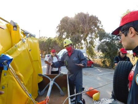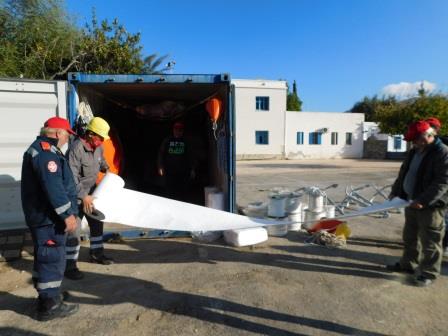 Αρχικώς, έγινε παρουσίαση του εξοπλισμού που έχουμε στη διάθεση μας και εξηγήθηκε η χρησιμότητα του και ο σωστός τρόπος χρήσης του καθενός υλικού ξεχωριστά, από αυτά που διαθέτουμε, σε περίπτωση ατυχούς συμβάντος θαλάσσιας ρύπανσης.