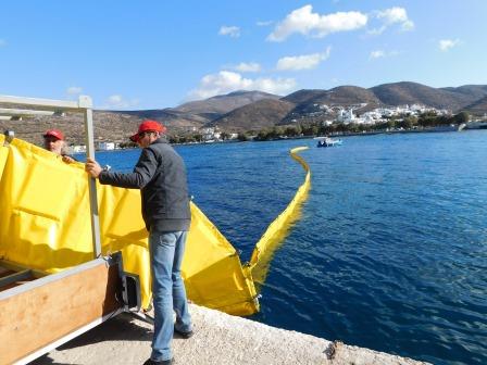 Αμέσως αποφασίστηκε η παρέαση και η αγκυροβόληση 150 μέτρων πλωτών φραγμάτων, με στόχο τον εγκλωβισμό της υποτιθέμενης θαλάσσιας ρύπανσης.