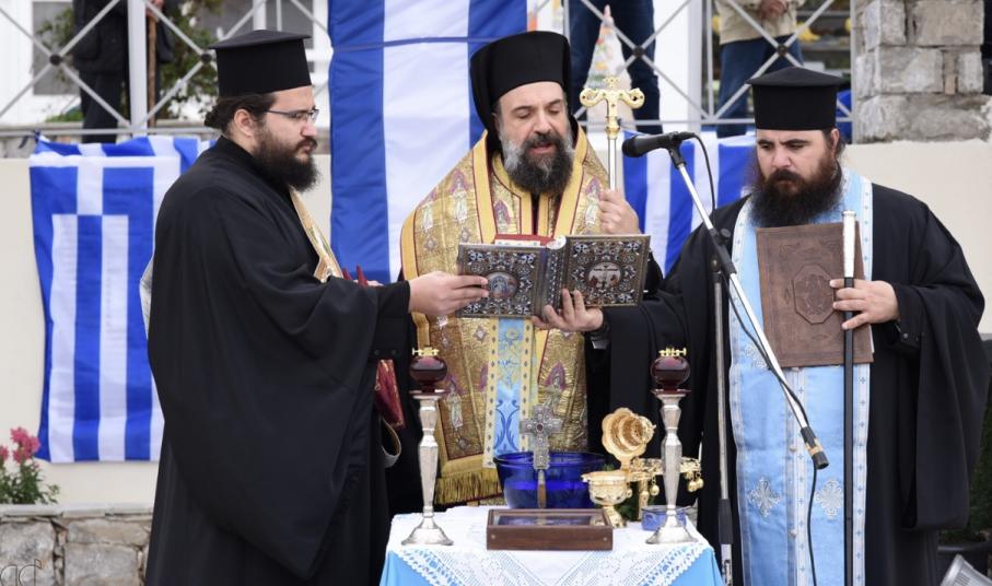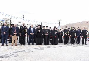Στον αγιασμό της νέας πλατείας χοροστάτησε ο Σεβασμιότατος Μητροπολίτης Θήρας, Αμοργού και Νήσων κ. Αμφιλόχιος ενώ τελέστηκε και τρισάγιο μνήμης για τους ήρωες των Ενόπλων Δυνάμεων.