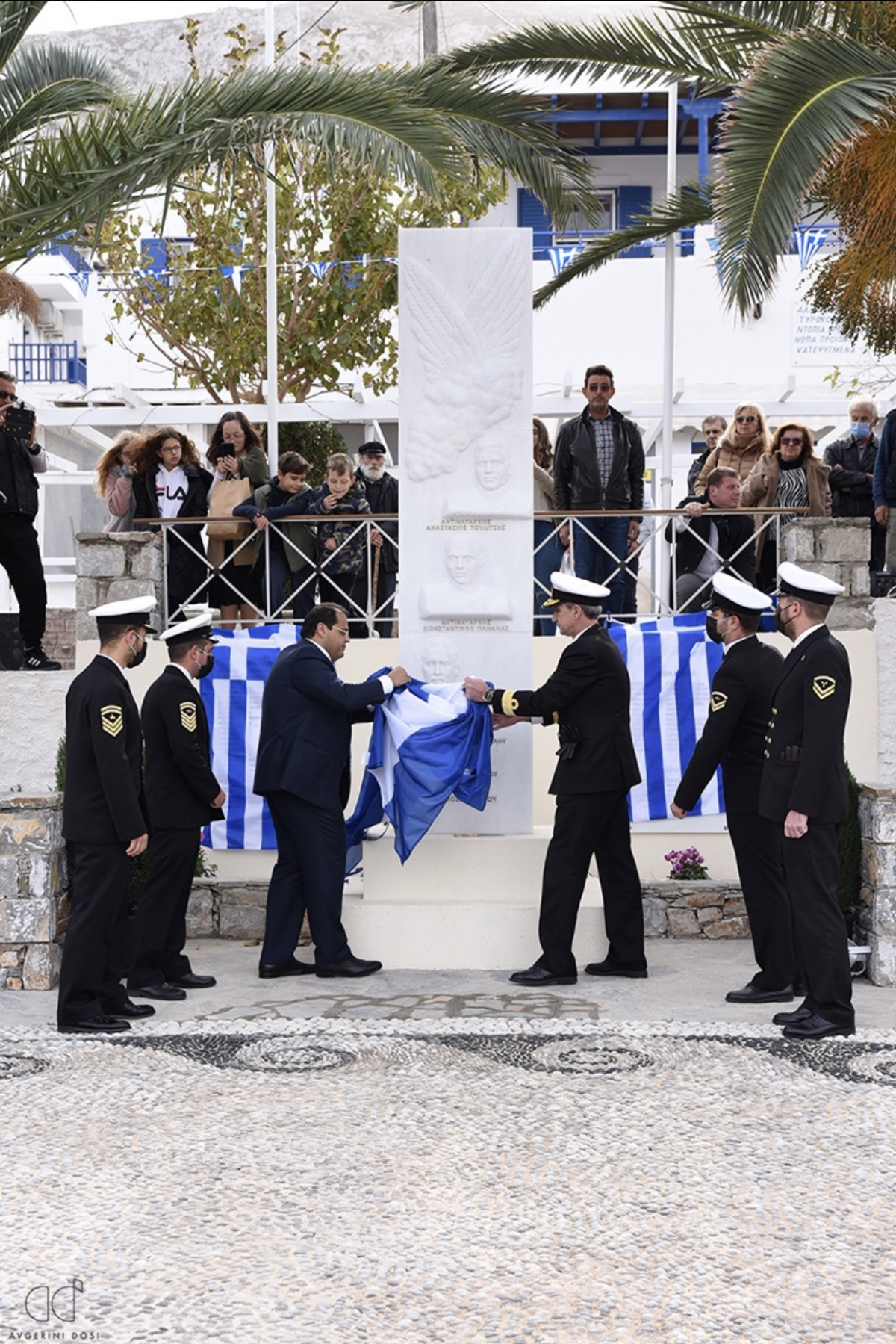 Τα εγκαίνια της πλατείας και τα αποκαλυπτήρια του Ηρώου τίμησαν με την παρουσία τους ο βουλευτής Κυκλάδων της ΝΔ Φίλιππος Φόρτωμας, ο Επαρχος Νάξου Γιάννης Μαργαρίτης, ο Διοικητής της Ναυτικής Διοίκησης Αιγαίου Αρχιπλοίαρχος ΠΝ Στυλιανός Δημόπουλος εκπροσωπώντας τον Α/ΓΕΕΘΑ Στρατηγό Κωνσταντίνο Φλώρο, ο Διοικητής της 6ης ΠΕΔΙΛΣ Αρχιπλοίαρχος ΛΣ-ΕΑ Ιάκωβος Γκίζης εκπροσωπώντας τον Αρχηγού του Λιμενικού Σώματος – Ελληνικής Ακτοφυλακής Αντιναύαρχο Λ.Σ. Θεόδωρο Κλιάρη, ο κυβερνήτης του ΤΠΚ/Μπλέσσας Πλωτάρχης ΠΝ Στυλιανός Μανάρας εκπροσωπώντας τον Α/ΓΕΝ Αντιναύαρχο Στυλιανό Πετράκη, σεβαστοί ιερείς, εκπρόσωποι της τοπικής αυτοδιοίκησης και φορέων και δεκάδες πολίτες της Αμοργού. Τα εγκαίνια της πλατείας πραγματοποιήθηκαν παρουσία της Φιλαρμονικής του Λιμενικού Σώματος και αντιπροσωπείας αξιωματικών του ΤΠΚ/Μπλέσσας.