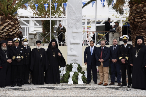 Η εκδήλωση ολοκληρώθηκε με την κατάθεση στεφάνων, την απαγγελία ποιημάτων από μαθητές και την ανάκρουση του εθνικού ύμνου από τη Φιλαρμονική του Λιμενικού Σώματος.