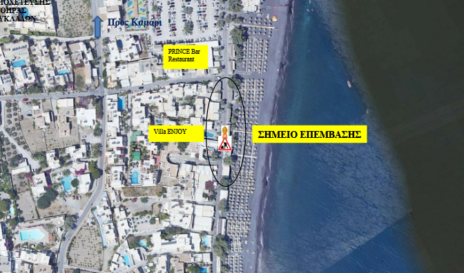Η Δ.Ε.Υ.Α. Θήρας γνωστοποιεί κυκλοφοριακές ρυθμίσεις στην περιοχή Καμαρίου και συγκεκριμένα, έξω από το «Villa Enjoy» στην παραλία, λόγω απαραίτητων εργασιών, στα πλαίσια αποκατάστασης φρεατίου Αποχέτευσης.