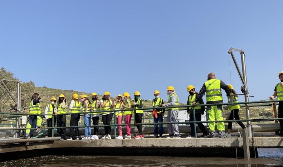 Την Τετάρτη 06/04/2022 πραγματοποιήθηκε η πρώτη εκπαιδευτική εκδρομή στις εγκαταστάσεις Αφαλάτωσης και Βιολογικού Καθαρισμού της Δ.Ε.Υ.Α.Θ. στα πλαίσια του εκπαιδευτικού προγράμματος «Ο Βιομηχανικός Κύκλος του Νερού». Μαθητές της Στ’ τάξης του Δημοτικού Σχολείου Μεσαριάς συνοδευόμενοι από την δασκάλα τους κα. Κιαμηλίδου Γεωργία, ήταν εκείνοι που έκαναν ποδαρικό στο εκπαιδευτικό πρόγραμμα της Δ.Ε.Υ.Α.Θ. και παρακολούθησαν την παρουσίαση που έκανε η συντονίστρια του προγράμματος κα. Βλαβιανού Ειρήνη και το τεχνικό προσωπικό των εγκαταστάσεων.