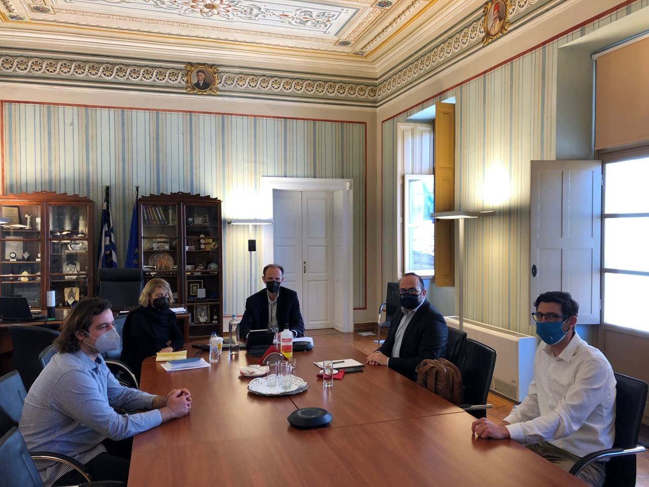 Συνάντηση εργασίας με τον Πρόεδρο κ. Γιάννη Ρούσσο και στελέχη του Επιμελητηρίου Κυκλάδων πραγματοποίησε το Σάββατο 9 Απριλίου ο Γενικός Γραμματέας Αιγαίου & Νησιωτικής Πολιτικής κ. Μανώλης Κουτουλάκης στο πλαίσιο της επίσκεψής του στη Σύρο.