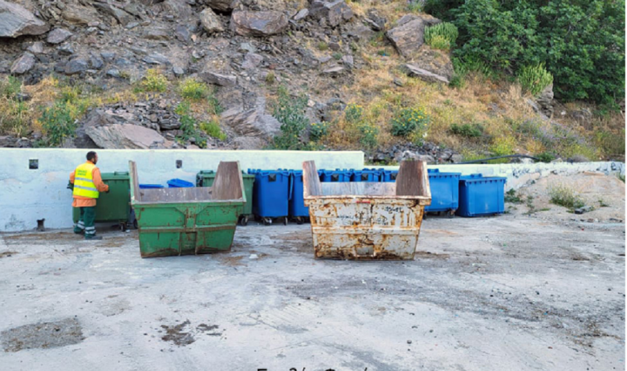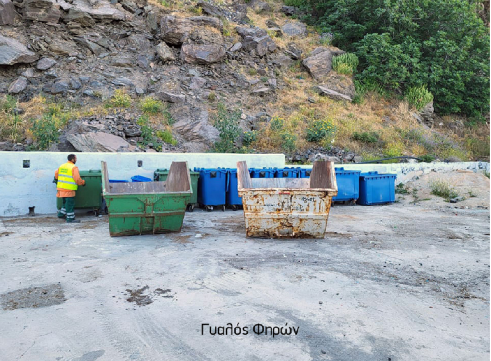 "Μετά την πλήρη αποκατάσταση με καθαρισμό και απολύμανση του χώρου εναπόθεσης απορριμμάτων στον Γυαλό των Φηρών, ολοκληρώθηκε και ο καθαρισμός του μονοπατιού στον Κόρφο Θηρασιάς, στο πλάι του οποίου είναι τοποθετημένοι οι κάδοι απορριμμάτων, που πλύθηκαν και απολυμάνθηκαν.