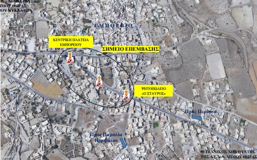 Η ΔΕΥΑ Θήρας γνωστοποιεί κυκλοφοριακές ρυθμίσεις στην περιοχή του Εμπορείου και συγκεκριμένα στο ύψος της κεντρικής πλατείας έως το ψητοπωλείο « Ο ΣΤΑΥΡΟΣ», λόγω απαραίτητων εργασιών στα πλαίσια του έργου με τίτλο «Δίκτυα Ύδρευσης Εμπορείου Θήρας». Κατά τη διάρκεια των εργασιών η διακοπή της κυκλοφορίας θα γίνεται ανά ρεύμα και ανά διαστήματα και θα ρυθμίζεται από το προσωπικό της αναδόχου εταιρίας. Οι κυκλοφοριακές ρυθμίσεις θα ξεκινήσουν το Σάββατο 20 Μαΐου, από τις 15:00 μ.μ., θα εκτελούνται και κατά τις νυχτερινές ώρες ώστε η ολοκλήρωση τους να γίνει το συντομότερο δυνατό. Οι εργασίες αναμένεται να ολοκληρωθούν την Τρίτη 24 Μαΐου. Σας ευχαριστούμε για την κατανόηση για την προσωρινή ενόχληση.