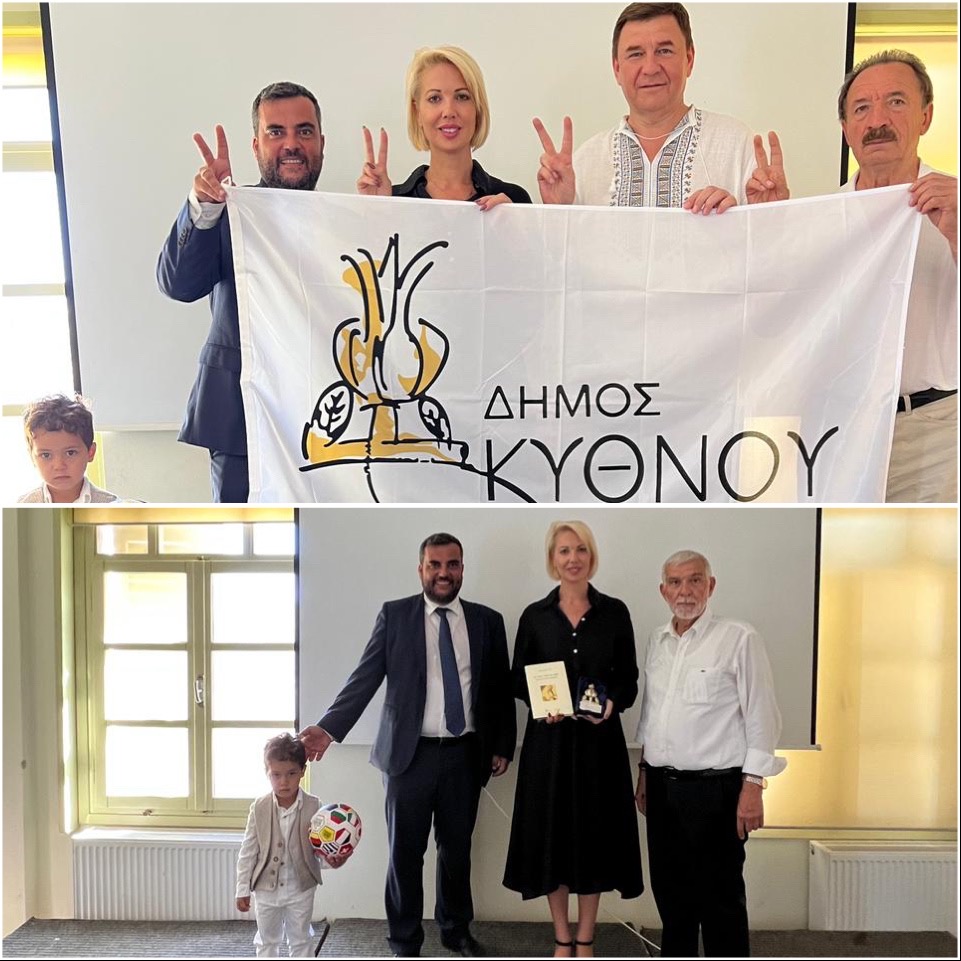 Η Κατερίνα Μονογυιού τόνισε ότι οι σκέψεις όλων μας βρίσκονται συνεχώς στον ουκρανικό λαό που δοκιμάζεται και ευχήθηκε να επικρατήσει σύντομα ειρήνη στην Ουκρανία. Τέλος, ο Αντιδήμαρχος κ. Φιλιππαίος δώρισε στη βουλευτή Κατερίνα Μονογυιού το συμβολικό έμβλημα της Κύθνου καθώς και ιστορικά βιβλία.