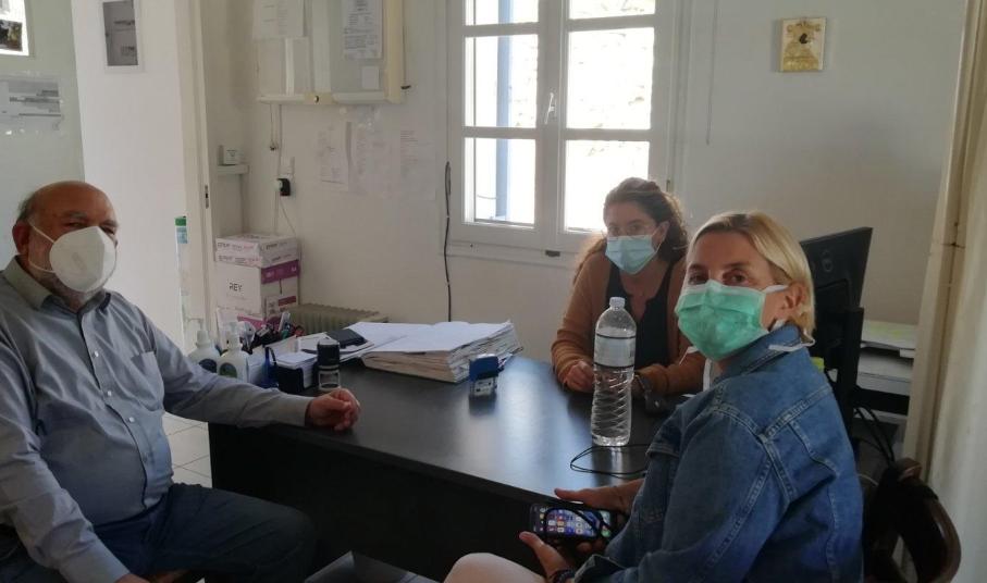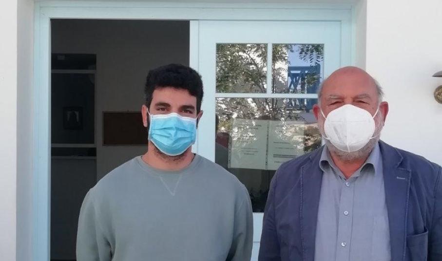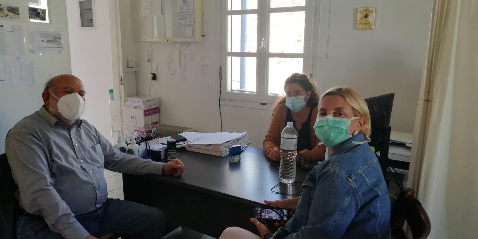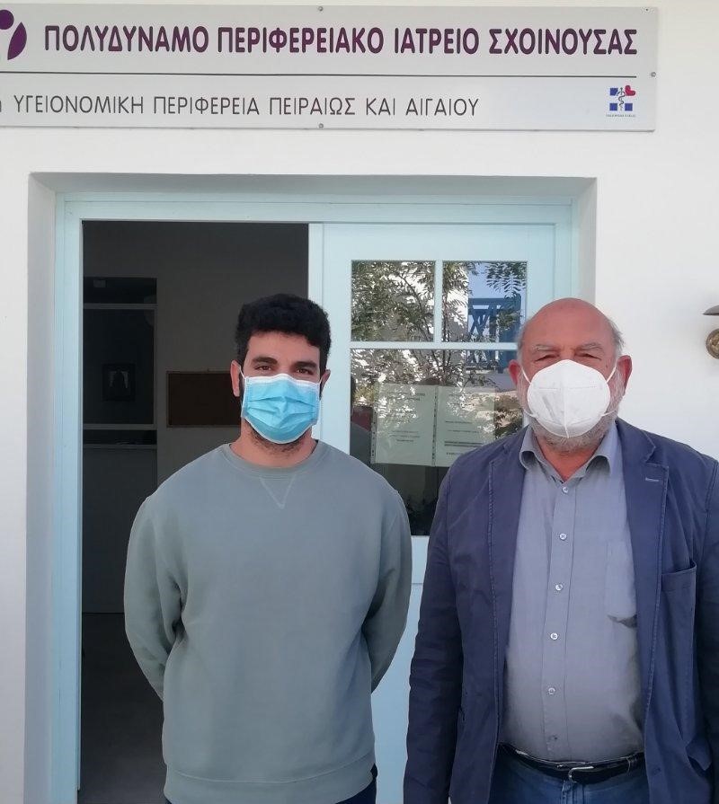 Στη Σχοινούσα συναντήθηκε με τον Αντιδήμαρχο Νίκο Νομικό, με τον οποίο συζήτησαν εκτενώς τα προβλήματα, ενώ επισκέφθηκαν σχεδόν το σύνολο των περιοχών του νησιού. Ένα από τα κεντρικά προβλήματα παραμένει η κατασκευή του νέου λιμανιού μαζί με την περιφερειακή οδό πρόσβασης, η οποία εκκρεμεί περίπου για 20 χρόνια, πέρασε από πολλές περιπέτειες και εμπλοκές με την Αρχαιολογία και τέλος πρόσφατα εγκρίθηκε η αναθεώρηση της περιβαλλοντικής μελέτης. Επίσης το νησί παραμένει χωρίς ΒΙΟΚΑ και αποχετευτικό δίκτυο παρά την ύπαρξη παλαιότερης μελέτης η οποία θα επικαιροποιηθεί. Ακόμη έμφαση δόθηκε στην επεξεργασία χωροταξικής και πολεοδομικής μελέτης με πρόβλεψη επέκτασης του κεντρικού οικισμού και τέλος η ανάγκη πρόσθετης μονάδας αφαλάτωσης για κάλυψη των αρδευτικών αναγκών. Σε σχέση με το κτίριο στο οποίο στεγάζονται το Νηπιαγωγείο, το Δημοτικό και το Γυμνάσιο με Λυκειακές Τάξεις, τα προβλήματα εντοπίστηκαν στην ανυπαρξία πρόσβασης ΑΜΕΑ και στην κακή ποιότητα σύνδεσης στο internet. Στη συνέχεια επισκέφθηκε το Π.Π.Ι. του νησιού, του οποίου το νέο κτίριο λειτουργεί από τις αρχές του 2021 αλλά εγκαινιάσθηκε μόλις την προηγούμενη βδομάδα από τον Υπουργό Υγείας κ. Πλεύρη. Βεβαίως και εδώ υπηρετεί μόνο 1 αγροτικός γιατρός χωρίς παρουσία ειδικευμένου, 1 νοσηλεύτρια και 1 εθελοντής οδηγός.