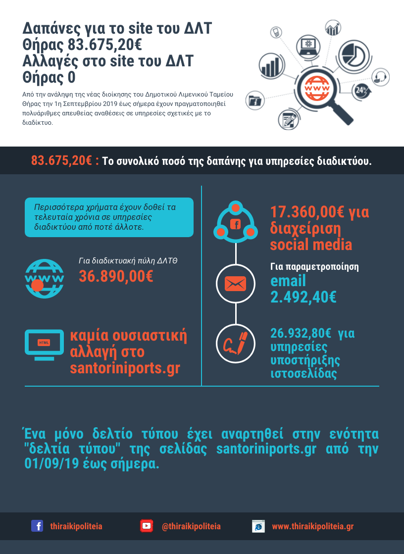 Δαπάνες για το site του Δημοτικού Λιμενικού Ταμείου Θήρας 83.675,20 ευρώ.