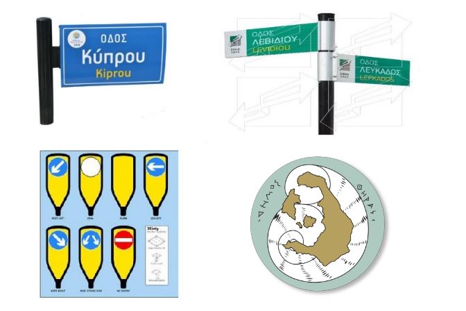 - πινακίδα ονοματοθεσίας οδών μοντέρνου τύπου,