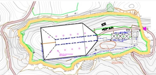• Διαμόρφωση χώρου και κατασκευή δαπέδου, εντός του γηπέδου που θα κατασκευαστεί ο ΧΥΤ, κατάλληλου για την εγκατάσταση του εξοπλισμού της μονάδας κομποστοποίησης
