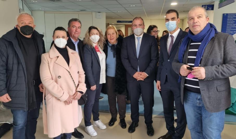 Λίγο αργότερα ο κ. Φόρτωμας, συνοδεύοντας τον κ. Θεμιστοκλέους, επισκέφτηκε το Γενικό Νοσοκομείο Θήρας. Εκεί πραγματοποίησαν συνάντηση εργασίας με τον Πρόεδρο της ΑΕΜΥ Α.Ε, κ. Κύριλλο Παπακυρίλλου, τη Διοικήτρια του Νοσοκομείου και Αντιπρόεδρο της ΑΕΜΥ Α.Ε, κα Ελένη Μπορμπουδάκη, τη Διευθύνουσα Σύμβουλο, κα Μιρέλλα Θεοδωροπούλου, τα μέλη του ΔΣ τη ΑΕΜΥ, καθώς και εκπροσώπους τοπικών φορέων, όπου συζητήθηκαν ζητήματα που απασχολούν το Νοσοκομείο και τέθηκαν οι στόχοι της νέας χρονιάς. Στη συνέχεια, ο κ. Φόρτωμας παρευρέθηκε στην κοπή της Πρωτοχρονιάτικης πίτας του Γενικού Νοσοκομείου Θήρας, όπου είχε την ευκαιρία να ανταλλάξει ευχές με το ιατρικό, νοσηλευτικό και λοιπό διοικητικό προσωπικό.