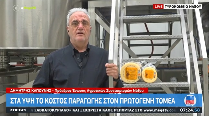 Με αφορμή το πρόσφατο ταξίδι της Ένωσης Αγροτικών Συνεταιρισμών Νάξου και του κορυφαίου της προϊόντος, της Γραβιέρας Νάξου, στο Μόναχο ο Πρόεδρος της Ε.Α.Σ., Δημήτρης Καπούνης, μίλησε από την «καρδιά» του νέου Τυροκομείου της Ένωσης στο «Mega Σαββατοκύριακο» για τα τεράστια προβλήματα που εξακολουθεί να αντιμετωπίζει ο πρωτογενής τομέας στο νησί μας και όχι μόνο, λόγω του αυξημένου κόστους παραγωγής, τα οποία σαφώς επηρεάζουν και την τελική τιμή των προϊόντων στο ράφι.