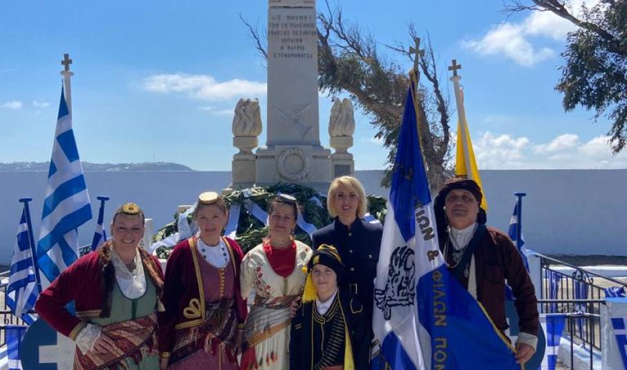 Η βουλευτής Κυκλάδων της Νέας Δημοκρατίας κ. Κατερίνα Μονογυιού παρέστη στη Δοξολογία στο Εμπορείο και στα Φηρά της Περιφερειακής Ενότητας Θήρας και κατέθεσε στεφάνι ως εκπρόσωπος της Βουλής των Ελλήνων. Στη συνέχεια, η Κατερίνα Μονογυιού παρακολούθησε την μαθητική παρέλαση για την Εθνική Επέτειο της 25ης Μαρτίου.