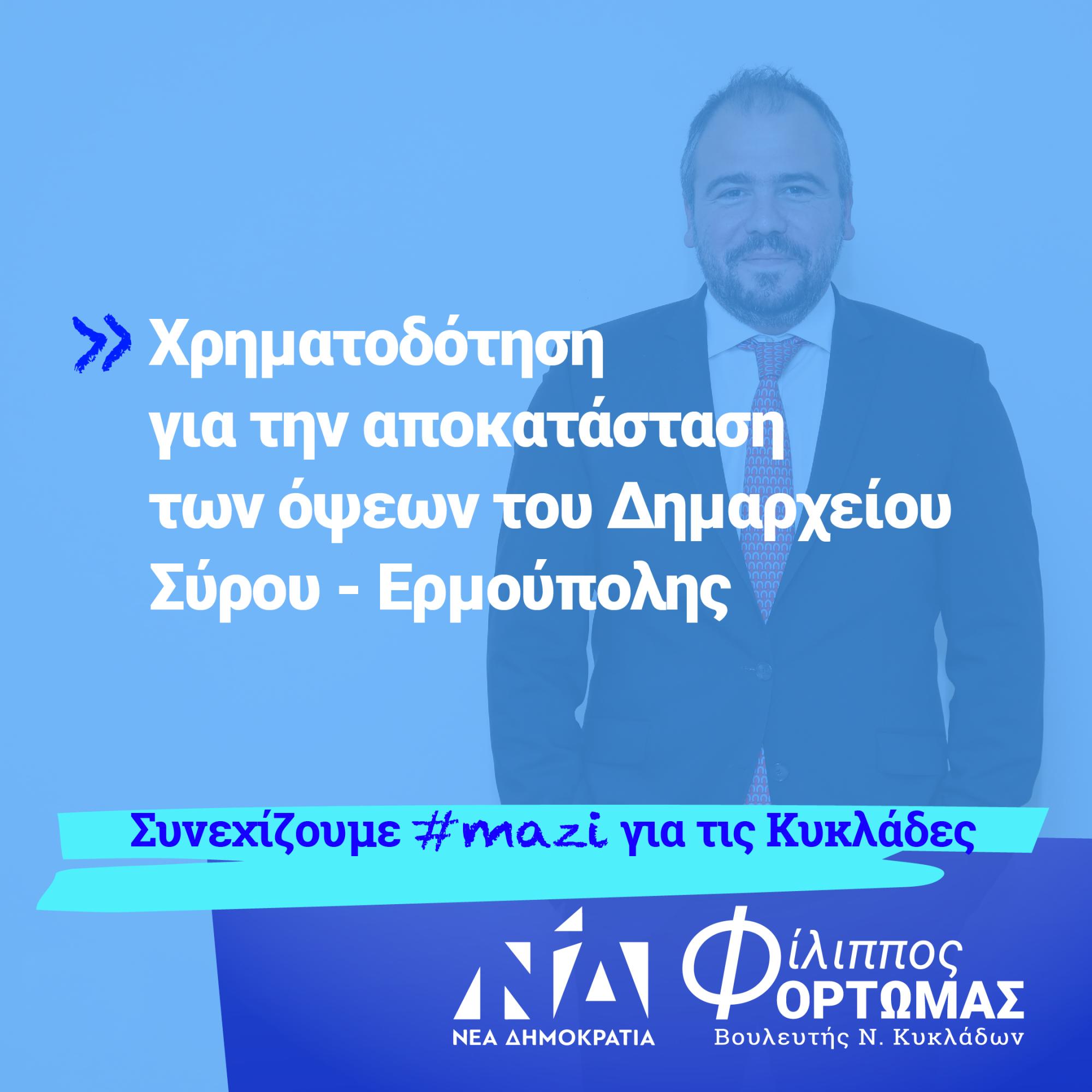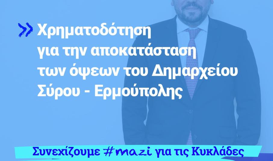 -Τη χρηματοδότηση για την αποκατάσταση των όψεων του Δημαρχείου Σύρου-Ερμούπολης