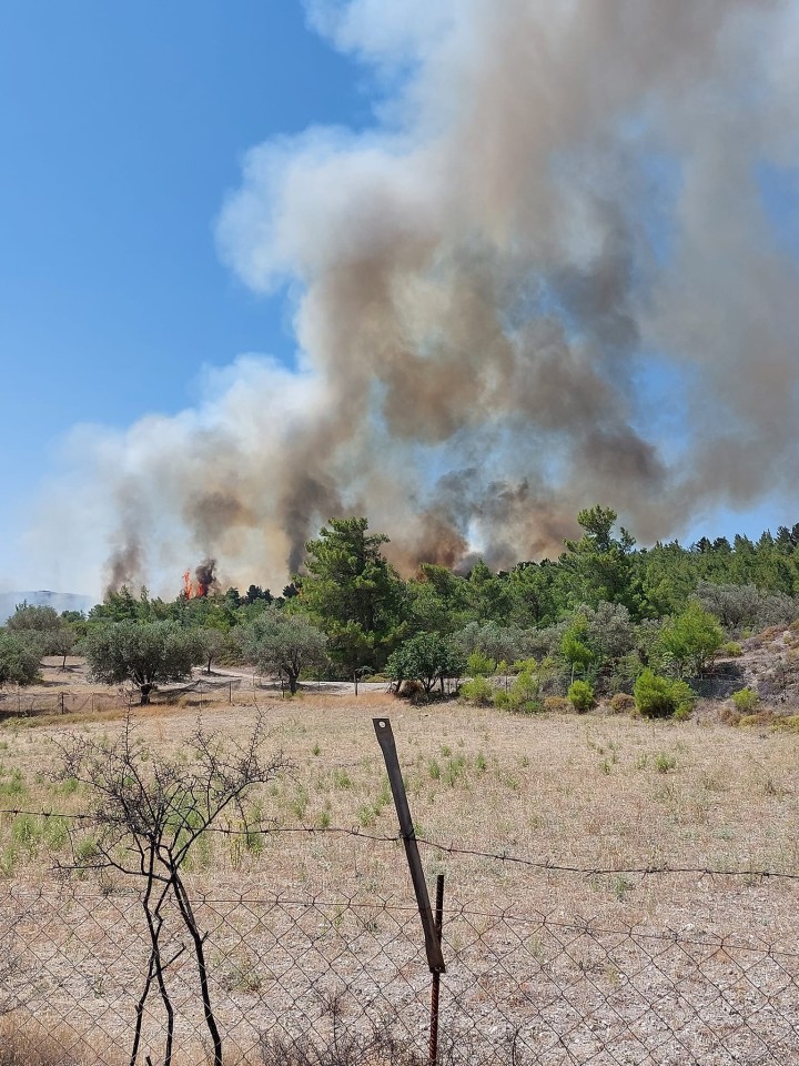 Η κατάσταση με την φωτιά στο νησί της Ρόδου είναι ανεξέλεγκτη παρά τις προσπάθειες που καταβάλλονται και τις συνεχείς ρίψεις νερού από τα πυροσβεστικά αεροπλάνα. Με ανακοίνωσή του, ο δήμαρχος Ρόδου, Αντώνης Καμπουράκης γνωστοποίησε πως επιτάσσονται όλα τα μηχανήματα έργων και οι υδροφόρες. Παράλληλα, η Πολιτική προστασία εξέδωσε έκτακτη ανακοίνωση, σύμφωνα με την οποία κλείνουν οι δρόμοι Σάλακο-Εμπωνα Απόλλωνα-Εμπωνα Λάερμα Απόλλωνα στη Ρόδο.Ολονύχτια μάχη για να αντιμετωπίσουν τη φωτιά στη Ρόδο έδωσαν οι δασοπυροσβεστικές δυνάμεις του νησιού, οι εθελοντές και οι κάτοικοι των γύρω χωριών, επιχειρώντας έτσι να αντιμετωπίσουν την πύρινη λαίλαπα που μετατρέπει σε στάχτη δεκάδες στρέμματα δάσους στην περιοχή ανάμεσα σε Απόλλωνα και Λάερμα. Η φωτιά, μαινόταν ανεξέλεγξτη όλο το βράδυ ενώ με το πρώτο φως της ημέρας ξεκίνησαν οι ρίψεις νερού από τις εναέριες δυνάμεις. Η μεγάλη πυρκαγιά καίει πυκνό δάσος με πεύκα και κυπαρίσσια με τις δυνάμεις της πυροσβεστικής να προσπαθούν να περιορίσουν το μέτωπο. Λίγο πριν τις 8 το πρωί, η πυρκαγιά είχε κατεύθυνση νοτιοανατολικά και ήταν σε χαράδρα. Οι πυροσβέστες άνοιξαν ζώνες προκειμένου να την αντιμετωπίσουν.