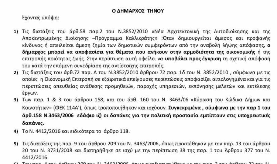Ο Δήμαρχος Τήνου, με την διαδικασία του κατεπείγοντος, σπαταλά δημόσιο χρήμα, κάνοντας απευθείας ανάθεση μιας υπηρεσίας, υπερκοστολογημένης έως και 20 φορές πάνω από το πραγματικό κόστος της. Ενοικιάζει δηλαδή για έναν μήνα, ένα βυτιοφόρο, στο 75% περίπου της τιμής αγοράς του!