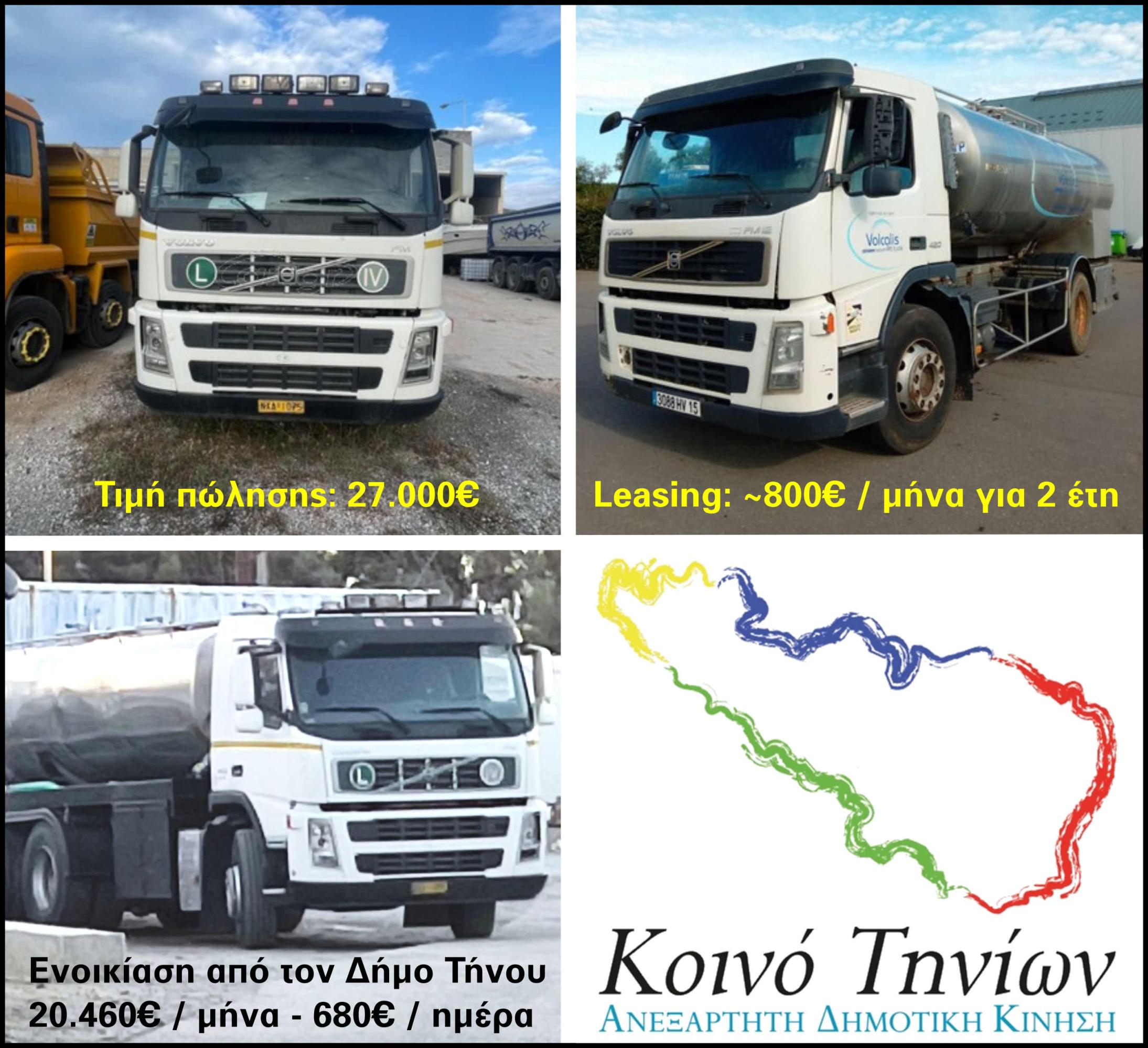 Ανακοίνωση - κριτική της παράταξης "Κοινό Τηνίων" για την υπερκοστολογημένη ενοικίαση βυτιοφόρου.