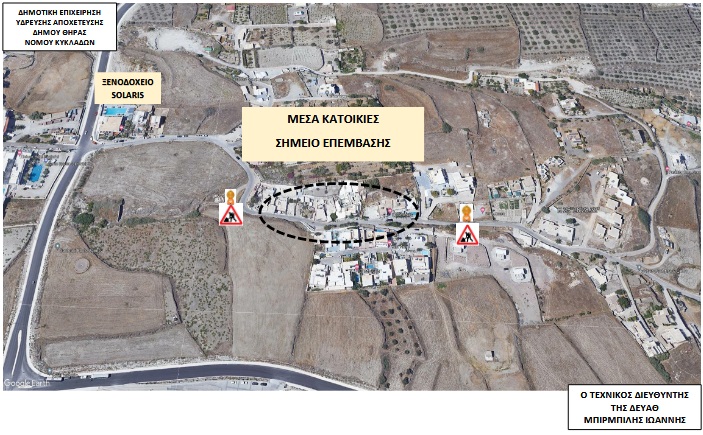 ΔΕΥΑ Θήρας: Κυκλοφοριακές ρυθμίσεις στην περιοχή Μέσα Κατοικιές