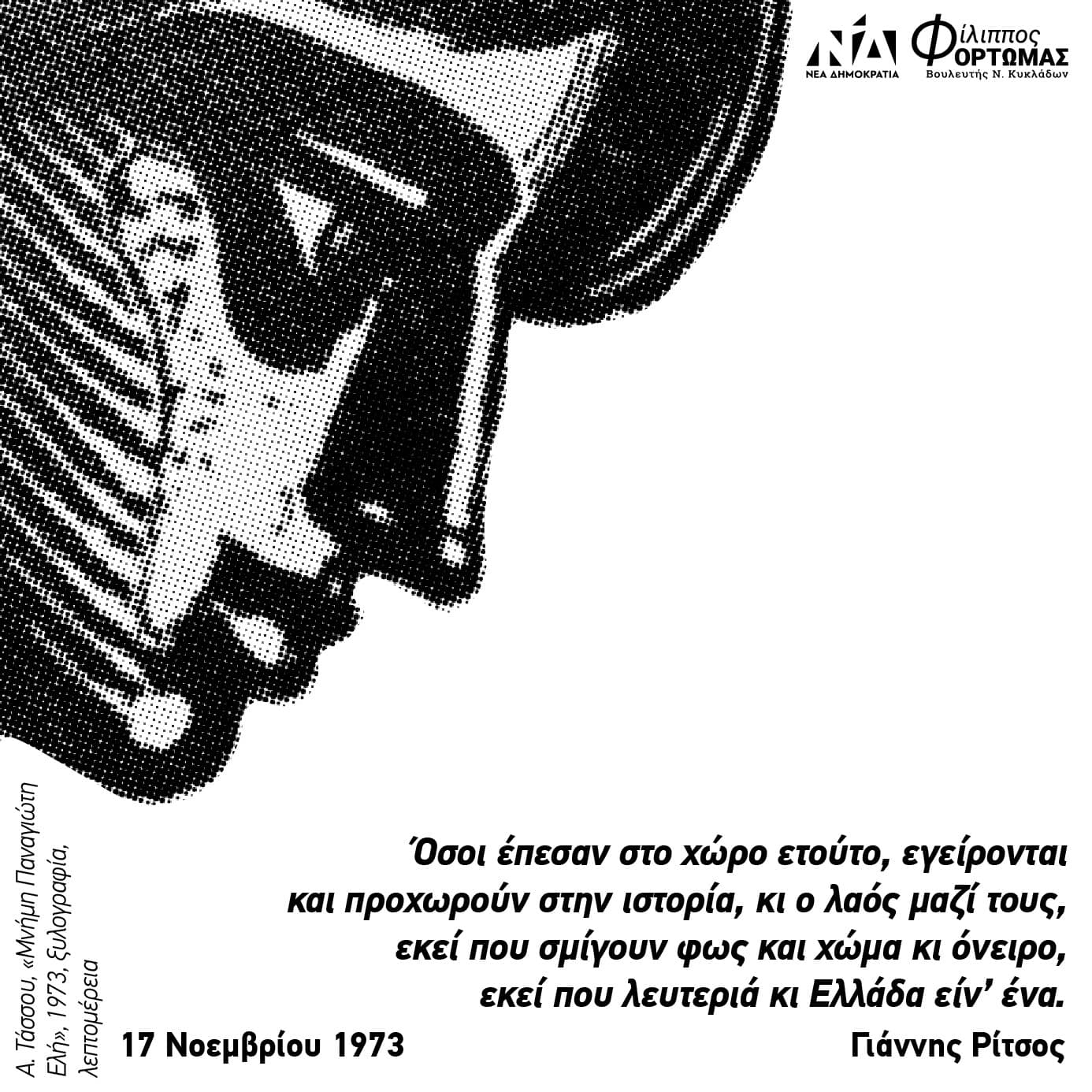 Η εξέγερση του Πολυτεχνείου μας υπενθυμίζει κάθε χρόνο τη συνεχή και αδήριτη ανάγκη για προάσπιση, της ελευθερίας έκφρασης και της δημοκρατίας.