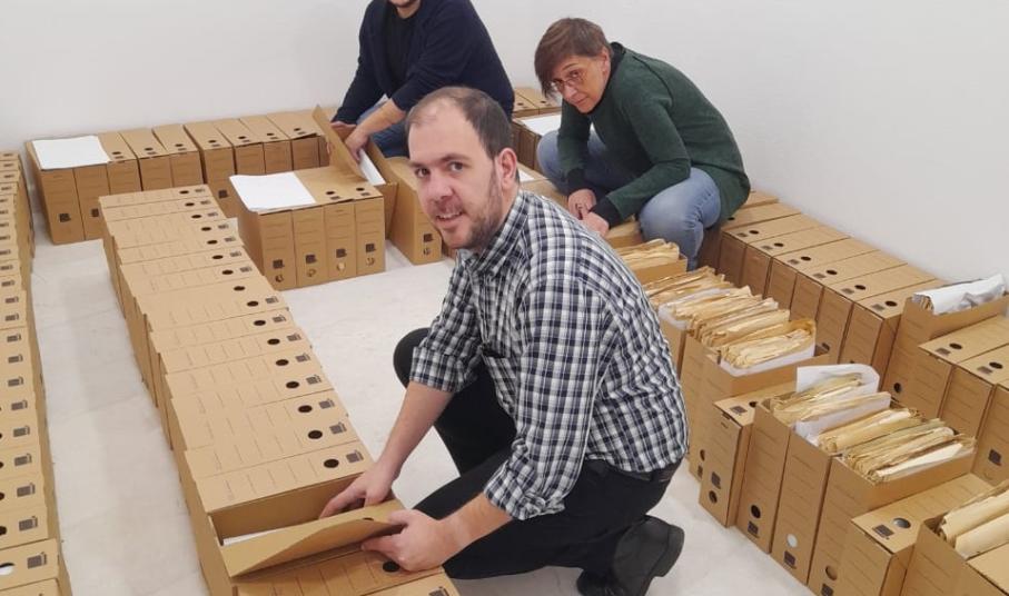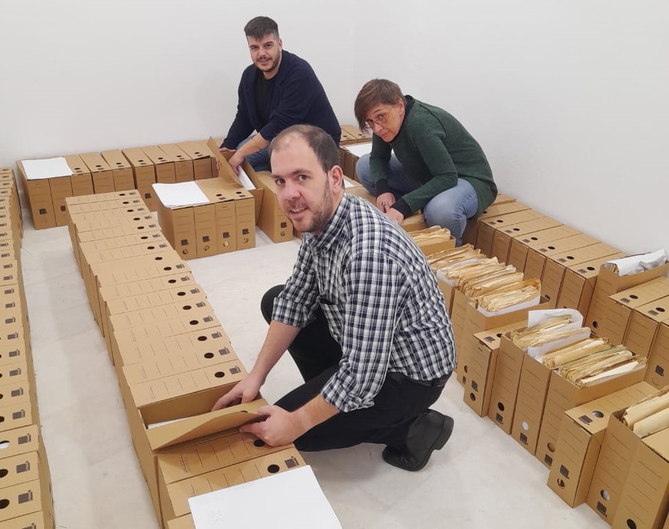 Η μεταφορά του αρχείου σε κατάλληλο χώρο φύλαξης κρίθηκε απαραίτητη για την καλύτερη φύλαξη και διάσωση του αρχείου αλλά και για την καλύτερη πρόσβαση των ερευνητών σε αυτό. Για τον λόγο αυτό, το θέμα ήρθε στο ΔΣ του Δήμου στις 31/1/2023 με την σύμφωνη γνώμη του Δημάρχου κ. Κων/νου Κουκά και εισήγηση της Προέδρου του Π.Α.Κ.Ο. " Γ. Αξιώτης" Άννα Καμμή. Με την απόφαση του ΔΣ του Δήμου Μυκόνου 10/2023 αποφασίστηκε η μεταφορά του αρχείου στο Γρυπάρειο Πολιτιστικό Κέντρο, σε χώρο που διαμορφώθηκε ειδικά για τον σκοπό αυτό. Έτσι η ομάδα του ΙΙΕ προσκλήθηκε εκ νέου στη Μύκονο με στόχο τον σωστό απεγκιβωτισμό, τον έλεγχο και τη διασταύρωση των αρχειακών περιγραφών και την ορθή τοποθέτηση του υλικού στο νέο χώρο φύλαξης. Η ομάδα εργασίας αποτελούνταν από την ιστορικό Κατερίνα Δέδε, Κύρια Ερευνήτρια, τον ιστορικό Βαγγέλη Σαράφη, Μεταδιδακτορικό Ερευνητή και τον ιστορικό/αρχειονόμο Χρήστο Χρυσανθόπουλο, Ειδικό Επιστημονικό Προσωπικό του ΙΙΕ/ΕΙΕ, ο οποίος είχε εργαστεί στην ταξινόμηση του αρχείου στο παρελθόν.