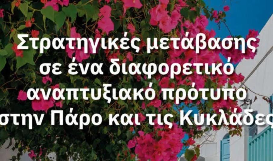Σε αυτή τη συγκυρία φορείς της Πάρου αποφάσισαν τη διοργάνωση μιας διημερίδας στις 13 και 14 Απριλίου 2024 με τίτλο «Στρατηγικές μετάβασης σε ένα διαφορετικό πρότυπο ανάπτυξης στην Πάρο και τις Κυκλάδες». Όπως αναφέρουν σε κοινή τοποθέτηση τους, σκοπός τους είναι να προχωρήσουν με τη βοήθεια εξειδικευμένων επιστημόνων και ανθρώπων με γνώση του χώρου πέρα από τις γενικές διαπιστώσεις και κατευθύνσεις που χαρακτηρίζουν τις περισσότερες μέχρι σήμερα προσπάθειες στη χάραξη ενός συγκεκριμένου οδικού χάρτη μετάβασης προς ένα αναπτυξιακό πρότυπο που θα εξισορροπήσει την οικονομική ανάπτυξη με την προστασία του περιβάλλοντος και της φυσιογνωμίας και την κοινωνική συνοχή.