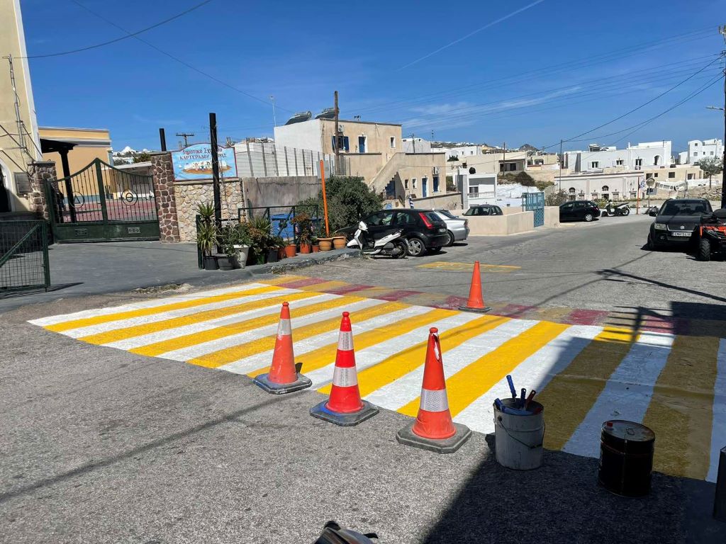 Εργασίες για τη διαγράμμιση διαβάσεων στις σχολικές μονάδες του νησιού, πραγματοποιεί αυτό το διάστημα ο Δήμος Θήρας.
