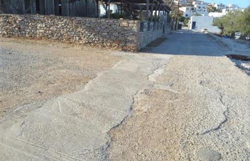 Για τη διευκόλυνση της κίνησης των πεζών προβλέπεται η δημιουργία πεζοδρομίου με επαρκές πλάτος. Το πεζοδρόμιο διαχωρίζεται από το υπόλοιπο διαμορφούμενο τμήμα του παραλιακού μετώπου με κράσπεδο το οποίο τοποθετείται κατά 10 εκ. ψηλότερα από τη στάθμη του οδοστρώματος. Το επίπεδο κίνησης των οχημάτων, σε περίπτωση ανάγκης ή των οχημάτων των κατοίκων της οδού, διαφοροποιείται μέσω αλλαγή επιπέδου από το χώρο αποκλειστικής κίνησης πεζών. Στο τμήμα συνολικού μήκους 7,00 περίπου μέτρων, όπου το συνολικό διαθέσιμο πλάτος κυμαίνεται μεταξύ 3,30 και 3,70Μ το πεζοδρόμιο κατασκευάζεται στην ίδια στάθμη με το οδόστρωμα σε συνολικό μήκος περίπου 15,00Μ.Στο πεζοδρόμιο προβλέπονται υποβάσεις για την πρόσβαση των πεζών στην παραλία. Η απορροή των ομβρίων υδάτων γίνεται με φυσικό τρόπο μέσω κλίσεων και υψομετρικών διαφορών.