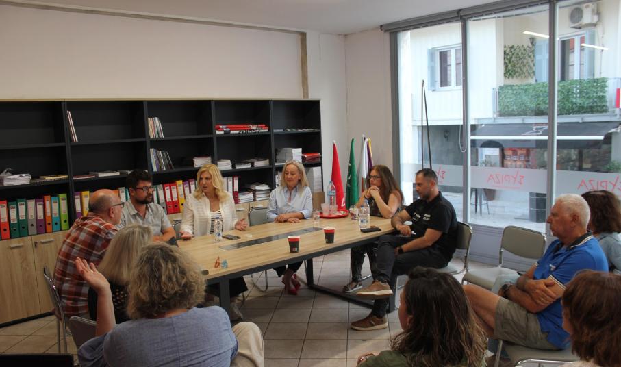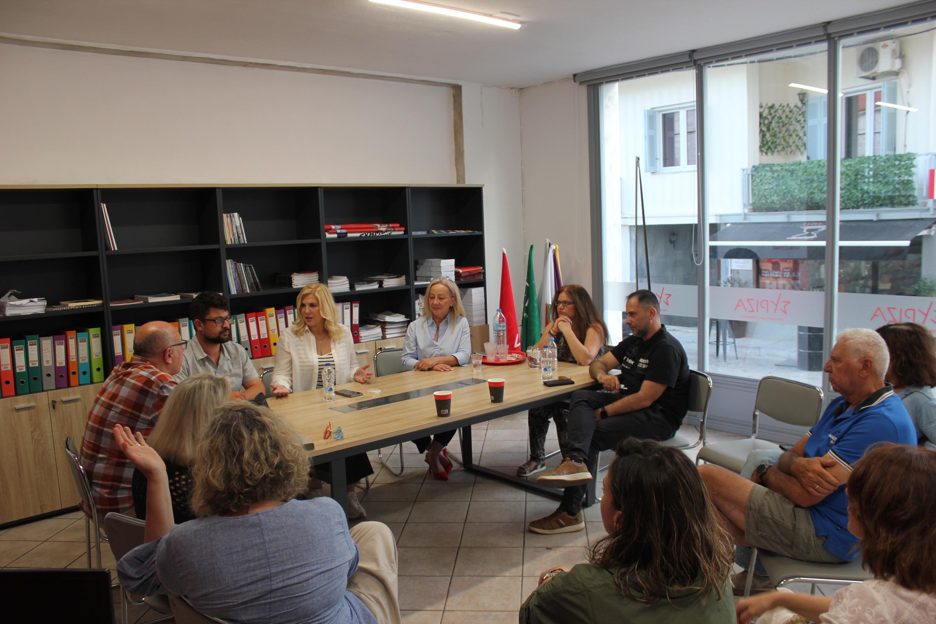 Πλαισιωμένη από την υποψήφια ευρωβουλευτή του ΣΥΡΙΖΑ – ΠΣ από τις Κυκλάδες, Κατερίνα Γιαννακά, τον οργανωτικό υπεύθυνο του νομού για τις εκλογές, Κώστα Καρανάσιο και τον υπεύθυνο του κόμματος για τη Σύρο, Κώστα Βασιλάκη, η κ. Θρασκιά μίλησε για όλα τα θέματα που απασχολούν τα νησιά, όπως ενδεικτικά, οι μετακινήσεις και το Μεταφορικό Ισοδύναμο, η κατάσταση των δομών Υγείας, το πρόβλημα της εύρεσης στέγης κ.α..