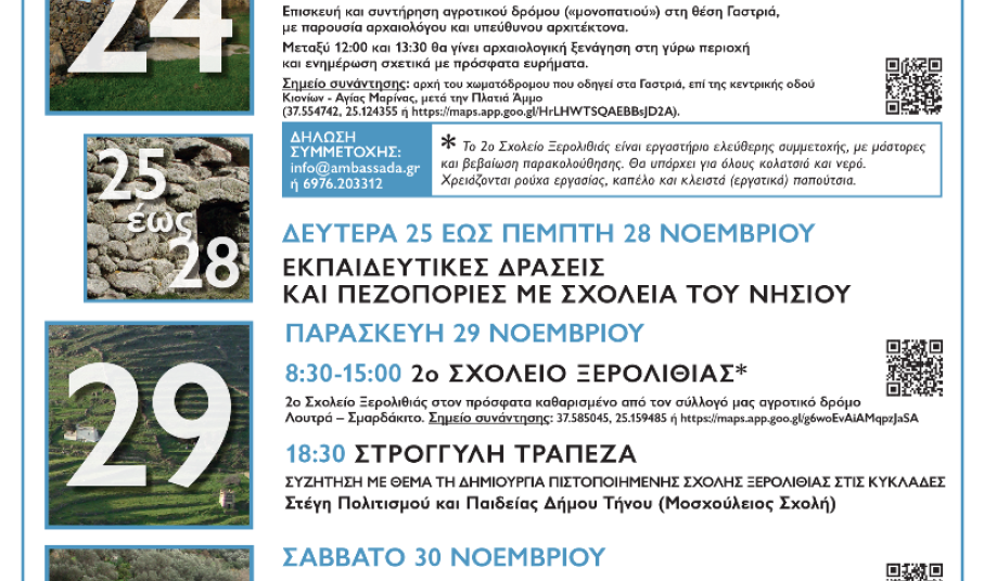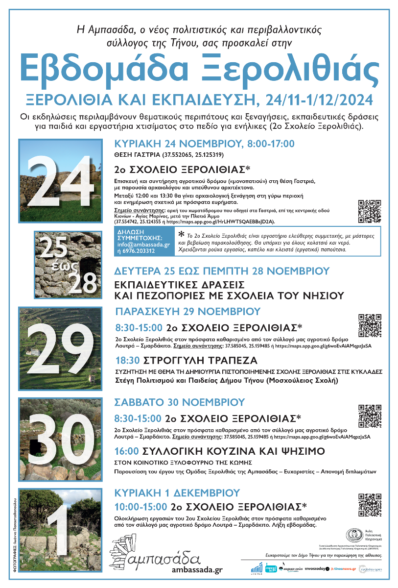 Με ιδιαίτερη χαρά η Αμπασάδα σας προσκαλεί στη συζήτηση με θέμα «Ίδρυση Πιστοποιημένης Σχολής Ξερολιθιάς στις Κυκλάδες: Μια συμπαθητική ιδέα ή μια ανάγκη;».