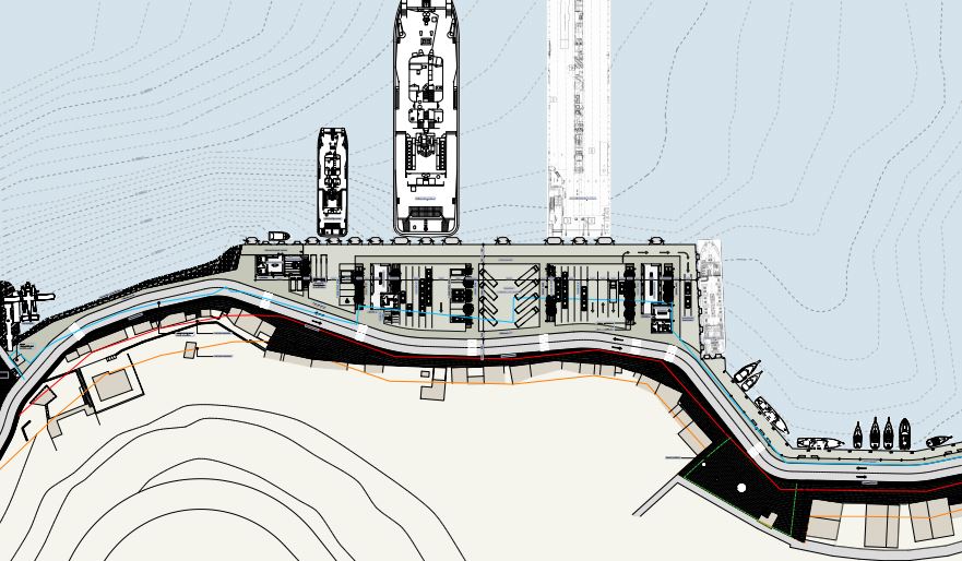 Στο εσωτερικό της λιμενολεκάνης, αναμενόταν να διαμορφωθούν κρηπιδώματα ανατολικά σε μήκος 34μ., στη νότια ακτή σε μήκος 60 περίπου μέτρων και στην συνέχεια δυτικά σε μήκος 30μ. περίπου για την διαμόρφωση του απαραίτητου χερσαίου χώρου. Επίσης, είχε προταθεί διαπλάτυνση της υφιστάμενης παραλιακής οδού που εξυπηρετεί την πρόσβαση στον υφιστάμενο λιμένα, οπότε κοντά στον υφιστάμενο μύλο θα διαμορφωθεί και ράμπα για πρόσβαση στο αλιευτικό καταφύγιο. Για αύξηση της δυναμικότητας του καταφυγίου είχε προταθεί επίσης να διαμορφωθεί σταθερός προβλήτας επί βάθρων στην υπήνεμη πλευρά του προσήνεμου μόλου, με σύνδεση με τα δυτικά κρηπιδώματα. Ετσι, ο κυματισμός θα απομειώνεται στα βράχια του προσήνεμου μόλου.