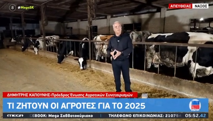 Την ευχή του το 2025 να είναι καλύτερο από το 2024 για τους αγρότες και τους κτηνοτρόφους της χώρας μας εξέφρασε ο Πρόεδρος της Ένωσης Αγροτικών Συνεταιρισμών Νάξου, Δημήτρης Καπούνης, μιλώντας στο «Mega Σαββατοκύριακο».