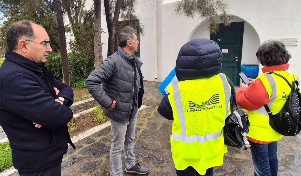 2. Επίσης, τη Δευτέρα 17 Φεβρουαρίου του 2025, στο νησί μας έφτασαν μηχανικοί της Γενικής Διεύθυνσης Αποκατάστασης Επιπτώσεων Φυσικών Καταστροφών (ΓΔΑΕΦΚ του Υπουργείου Κλιματικής Κρίσης & Πολιτικής Προστασίας), για έλεγχο των δημόσιων κτιρίων.